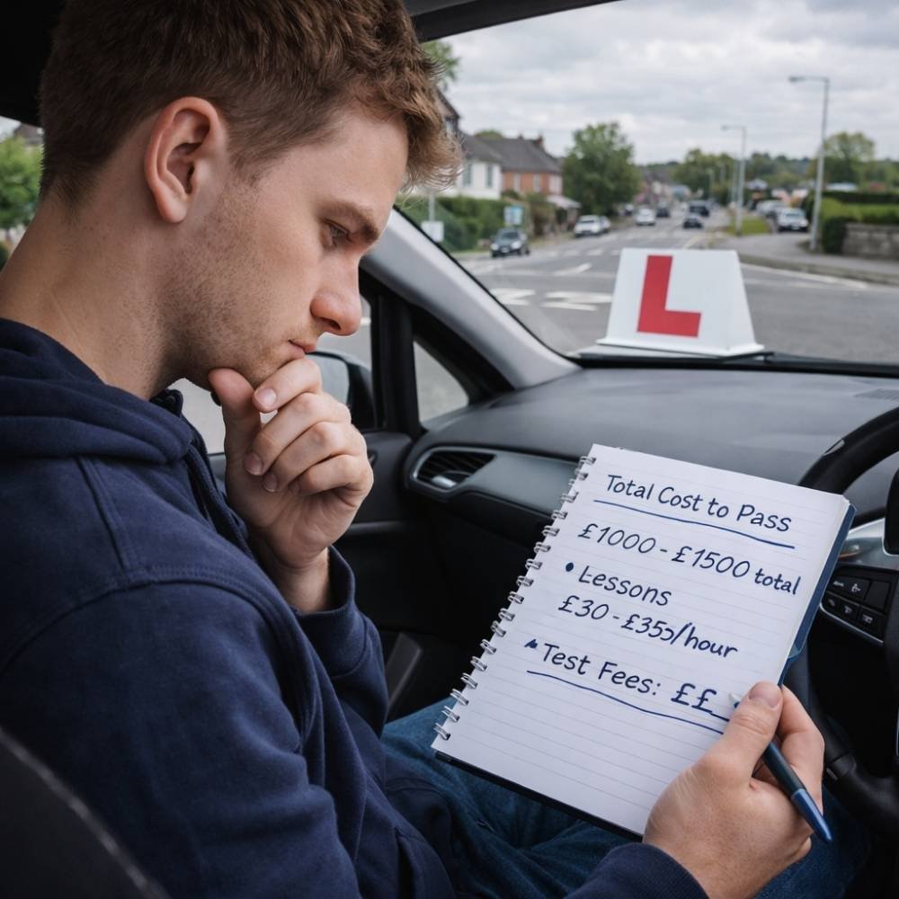 • The total cost to pass is typically £1,000–£1,500 including lessons and extras.